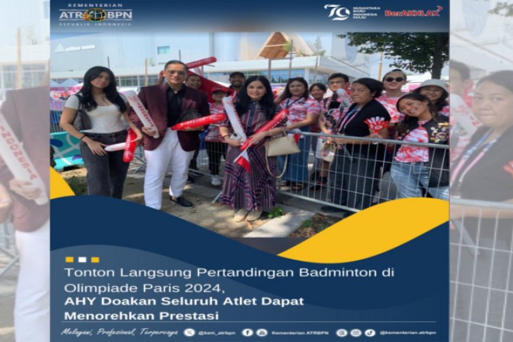 SUARA NGAWI - Menteri Agraria dan Tata Ruang/Kepala Badan Pertanahan Nasional (ATR/BPN), Agus Harimurti Yudhoyono (AHY) menyaksikan langsung pertandingan badminton dalam pagelaran Olimpiade Paris 2024 di Porte de la Chapelle Arena, Rabu (31/07/2024).