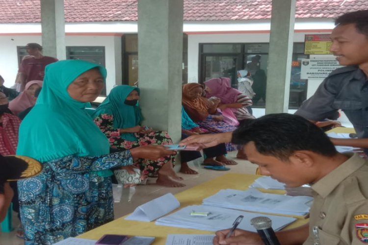 NGAWI - Bantuan Langsung Tunai (BLT) Dana Desa (DD) tahun 2023 Desa Bangunrejokidul, Kecamatan Kedunggalar, Kabupaten Ngawi, Jawa Timur, dibagikan kepada warga pada Selasa Bulan April (11/04/2023).