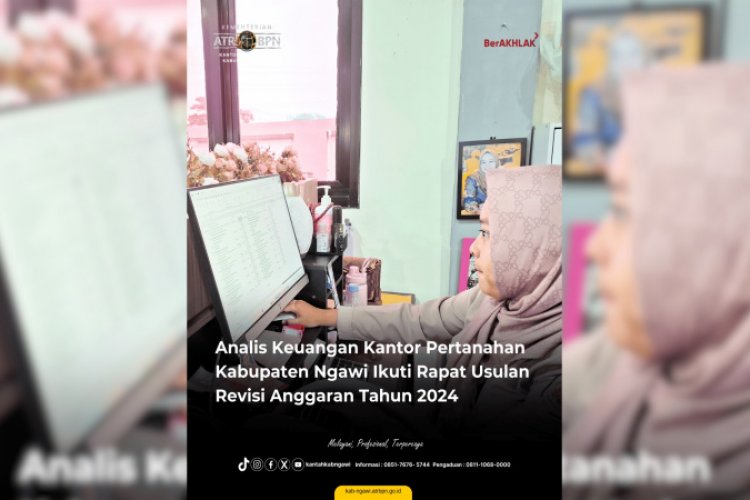 NGAWI - Analis Keuangan Kantor Pertanahan Kabupaten Ngawi, Ibu Nicky Agsen Haspriliory, menghadiri rapat daring terkait usulan revisi anggaran untuk pemenuhan belanja operasional, khususnya gaji, dan belanja Penerimaan Negara Bukan Pajak (PNBP) Tahun Anggaran 2024. Kegiatan tersebut diselenggarakan oleh Kantor Wilayah Badan Pertanahan Nasional (Kanwil BPN) Provinsi Jawa Timur melalui platform Zoom Meeting. (19/11/2024)