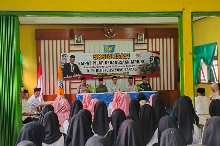 NGAWI - Anggota DPR RI Dapil Jatim 7 meliputi Kabupaten Ngawi, Magetan, Ponorogo, Pacitan dan Trenggalek, Budi Sulistyono alias Kanang menghadiri acara Sosialisasi 4 Pilar bersama seluruh anak sekolah di wilayah Kecamatan Kendal, Kabupaten Ngawi pada Selasa 9 Desember 2025.
