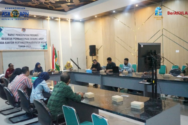 NGAWI - Kantor Pertanahan Kabupaten Ngawi telah melaksanakan rapat penting terkait percepatan progres pembangunan Gedung Arsip pada Jumat, 30 Agustus 2024. Rapat ini dihadiri oleh sejumlah pihak terkait, termasuk Tim Pembangunan Gedung Arsip, Pejabat Pembuat Komitmen (PPK), pelaksana proyek, konsultan pengawas, narasumber bidang teknis dari Dinas Pekerjaan Umum dan Penataan Ruang (PUPR), serta narasumber bidang hukum dari Kejaksaan Negeri Ngawi.