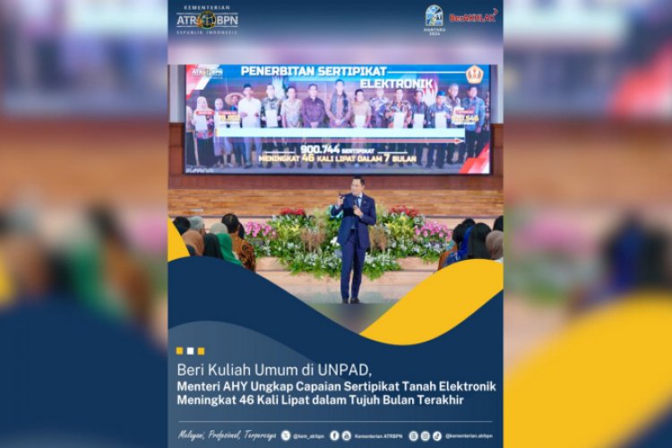 "Dalam tujuh bulan terakhir ini peningkatan produksi Sertipikat Tanah Elektronik mencapai 46 kali lipat dan hampir semua Kantor Pertanahan se-Indonesia sudah mampu menyelenggarakan administrasi elektronik termasuk sertipikasi elektronik," kata Menteri ATR/Kepala BPN dalam kuliah umumnya.