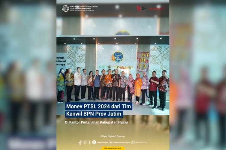 Ngawi, 29 Agustus 2024 – Kantor Pertanahan Kabupaten Ngawi hari ini menerima kunjungan kerja dari Tim Kanwil BPN Provinsi Jawa Timur. Kunjungan ini bertujuan untuk melakukan monitoring dan evaluasi terhadap pelaksanaan Program Pendaftaran Tanah Sistematis Lengkap (PTSL) tahun 2024.