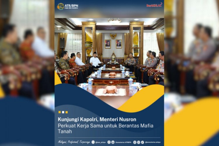 SUARA NGAWI, JAKARTA - Menteri Agraria dan Tata Ruang/Kepala Badan Pertanahan Nasional (ATR/BPN), Nusron Wahid bersama Wakil Menteri ATR/Wakil Kepala BPN, Ossy Dermawan mengunjungi Kepala Kepolisian Republik Indonesia (Kapolri), Listyo Sigit Prabowo di Mabes Polri, Jakarta, Jumat (08/11/2024). Pertemuan ini dilakukan untuk berkoordinasi dalam upaya pemberantasan mafia tanah di Indonesia.