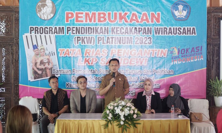 NGAWI - Lembaga Kursus dan Pelatihan (LKP) Sari Dewi yang berada di Ngrambe, Ngawi, Jawa Timur sukses menggelar pembelajaran perdana program Pendidikan Kecakapan Wirausaha (PKW) level platinum 2023, dibuka Senin (25/09/2023).