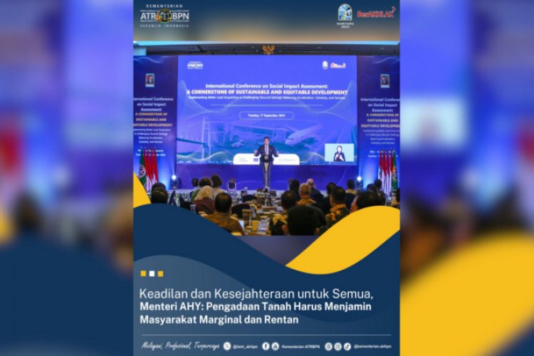 SUARA NGAWI, JAKARTA - Tanah merupakan fondasi dalam setiap pembangunan. Pada pelaksanaannya, perlu dipastikan pengadaan tanah melalui prosedur yang benar dan berkeadilan bagi seluruh lapisan masyarakat. Demikian disampaikan Menteri Agraria dan Tata Ruang/Kepala Badan Pertanahan Nasional (ATR/BPN), Agus Harimurti Yudhoyono (AHY) usai membuka International Conference on Social Impact Assessment di Hotel Ritz-Carlton Jakarta, Selasa (17/09/2024).