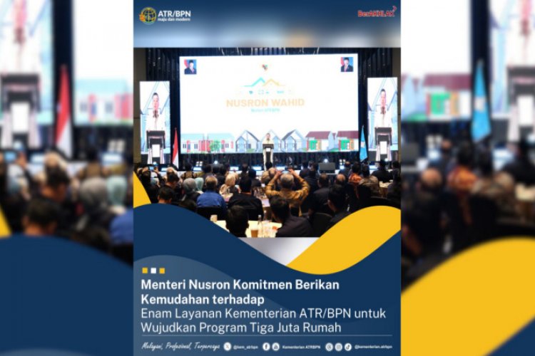 SUARA NGAWI, JAKARTA - Menteri Agraria dan Tata Ruang/Kepala Badan Pertanahan Nasional (ATR/BPN), Nusron Wahid turut mendukung program Tiga Juta Rumah dengan berkomitmen memberikan kemudahan terhadap enam layanan yang ada di Kementerian ATR/BPN. Mulai dari Zona Nilai Tanah (ZNT), proses sertipikasi, Lahan Sawah yang Dilindungi (LSD), Kesesuaian Kegiatan Pemanfaatan Ruang (KKPR), Hak Tanggungan, hingga Roya.