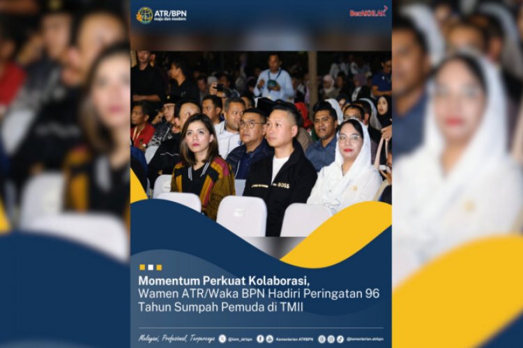SUARA NGAWI, JAKARTA - Wakil Menteri Agraria dan Tata Ruang/Wakil Kepala Badan Pertanahan Nasional (Wamen ATR/Waka BPN), Ossy Dermawan menghadiri Peringatan 96 Tahun Sumpah Pemuda pada Senin (28/10/2024) malam di Plaza Keong Mas, Taman Mini Indonesia Indah (TMII), Jakarta.