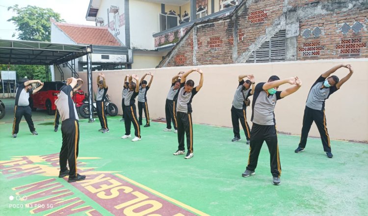 NGAWI - AKP Didik Supriyanto Kapolsek Paron bersama jajaran melaksanakan senam pagi yang kegiatan itu menjadi agenda rutin. Tidak hanya itu saja, setiap Jumat dirinya bersama anggota juga melaksanakan bhakti sosial.