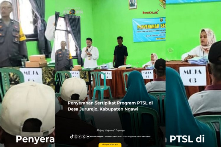 Acara yang berlangsung di Balai Desa Jururejo ini dihadiri oleh Kepala Kantor Pertanahan Kabupaten Ngawi, jajaran pemerintah desa, serta masyarakat penerima sertipikat. Sebanyak [jumlah sertipikat] sertipikat diserahkan secara simbolis kepada warga Desa Jururejo, yang telah mengikuti tahapan program PTSL sesuai prosedur yang berlaku.