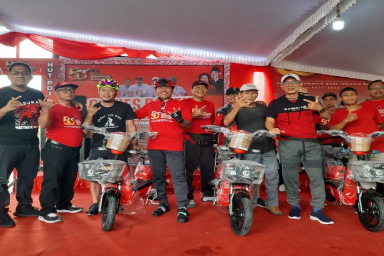 "Puncaknya pada tanggal 10 DPC PDI Perjuangan mengadakan tasyakuran dengan mengadakan hiburan rakyat yakni wayangan, dan hari ini gowes berhadiah utama sepeda motor listrik," ujar Antok menambahkan.