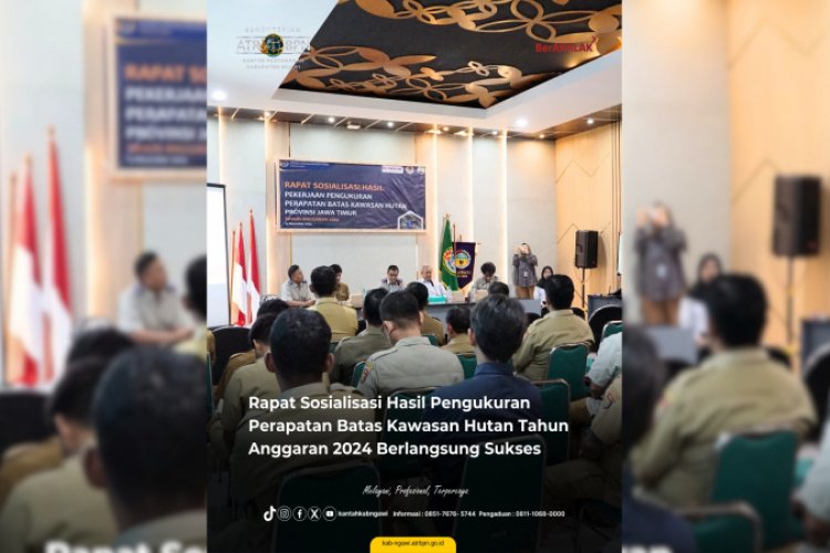NGAWI - Pada hari ini, Selasa, 10 Desember 2024, telah diselenggarakan Rapat Sosialisasi Hasil Pengukuran Perapatan Batas Kawasan Hutan Tahun Anggaran 2024. Kegiatan ini berlangsung di Ruang Sanggraha, Kantor Pertanahan Kabupaten Ngawi, dan dihadiri oleh berbagai pemangku kepentingan terkait.