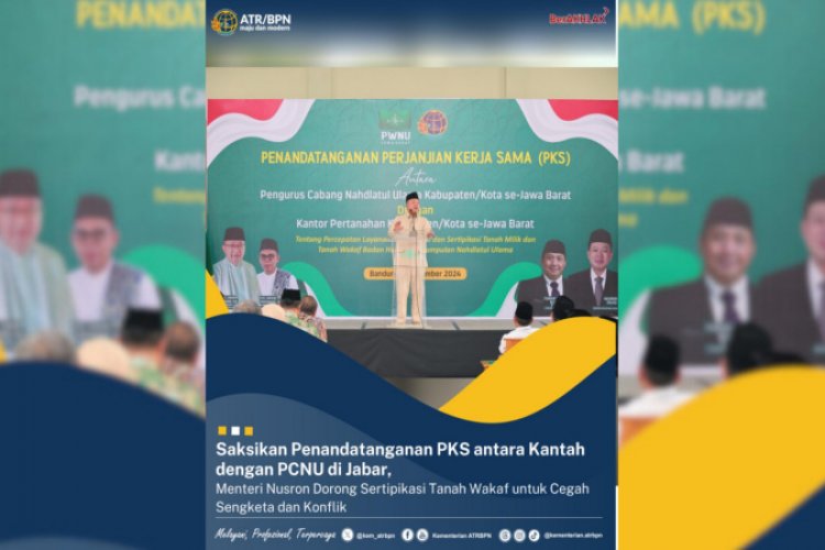 "Memang (sertipikasi tanah wakaf, red) ini dianjurkan, jadi kalau ada pesantren yang belum bersertipikat langsung didaftarkan saja sehingga tidak ada konflik," ucap Nusron Wahid usai menyaksikan penandatanganan Perjanjian Kerja Sama (PKS) antara 25 Kantor Pertanahan (Kantah) Kabupaten/Kota se-Jawa Barat dengan Pengurus Cabang Nahdlatul Ulama (PCNU) di wilayah terkait, yang berlangsung di Kantor PWNU Jawa Barat, Bandung, Kamis (05/12/2024).