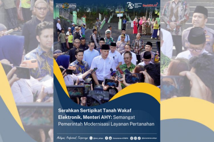 "Tadi yang kami serahkan adalah Sertipikat Tanah Elektronik. Jadi, ini bagian dari semangat pemerintah dan Pak Presiden benar-benar menekankan agar transformasi digital terus kita kejar seiring dengan upaya melakukan modernisasi dalam pemerintahan, termasuk manajemen tata kelola di bidang pertanahan dan tata ruang," kata Menteri AHY dalam doorstop dengan awak media usai menyerahkan sertipikat tanah wakaf.