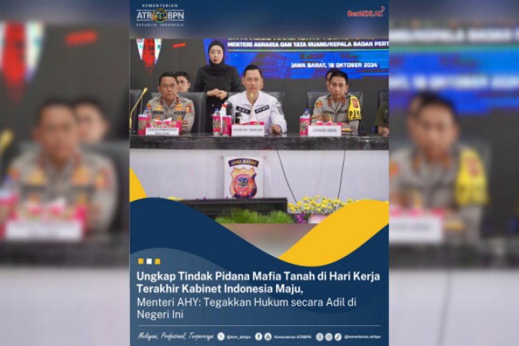 SUARA NGAWI, BANDUNG - Di hari kerja terakhirnya dalam Kabinet Indonesia Maju, Menteri Agraria dan Tata Ruang/Kepala Badan Pertanahan Nasional (ATR/BPN), Agus Harimurti Yudhoyono (AHY) mengungkap kasus mafia tanah yang terjadi di Kota dan Kabupaten Bandung dengan nilai kerugian mencapai Rp3,65 triliun. Pengungkapan tindak pidana pertanahan ini disampaikan dalam konferensi pers yang berlangsung di Mapolda Jawa Barat, Kota Bandung, Jumat (18/10/2024).