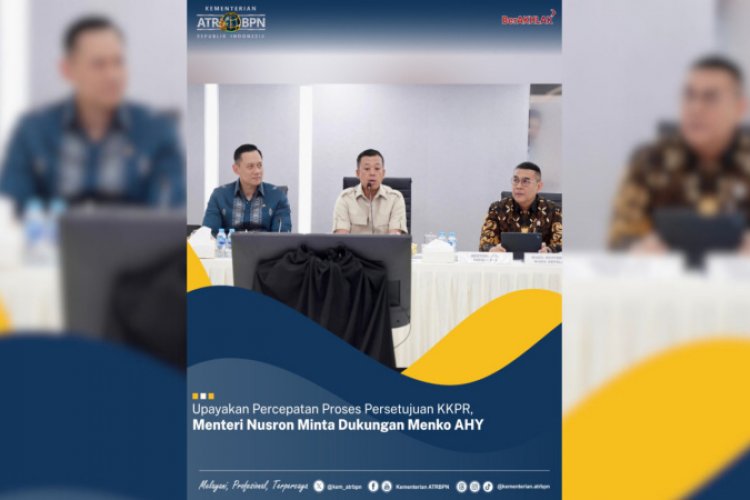 SUARA NGAWI, JAKARTA - Menteri Agraria dan Tata Ruang/Kepala Badan Pertanahan Nasional (ATR/BPN), Nusron Wahid minta dukungan Menteri Koordinator Bidang Infrastruktur dan Pembangunan Kewilayahan, Agus Harimurti Yudhoyono (Menko AHY) dalam urusan tata ruang, yaitu Kesesuaian Kegiatan Pemanfaatan Ruang (KKPR). Ia ingin mendorong agar proses Persetujuan KKPR menjadi lebih cepat ke depannya.