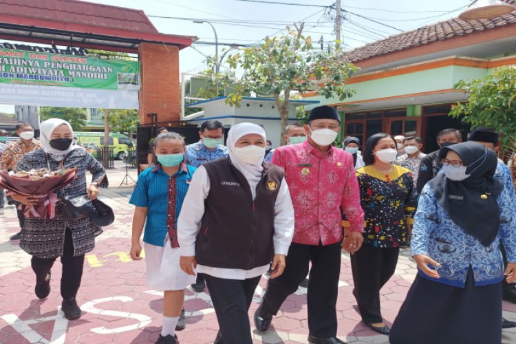 NGAWI - Untuk memastikan percepatan pelaksanaan vaksinasi bagi anak usia 6-11 tahun di Jatim, Gubernur Jawa Timur Khofifah Indar Parawansa meninjau pelaksanaan vaksinasi yang dilaksanakan di SDN Margomulyo 1 Kabupaten Ngawi, Jumat (17/12/2021).