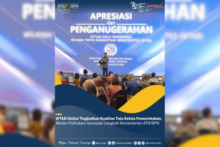 "Saya memberikan apresiasi kepada Kementerian ATR/BPN yang telah menggagas satu konsep WTAB. Ini adalah hal yang penting untuk mencapai tujuan nasional, salah satunya adalah memberikan pelayanan terbaik kepada masyarakat," kata Hadi Tjahjanto pada acara Apresiasi dan Penganugerahan Satuan Kerja Berpredikat WTAB yang berlangsung di Birawa Assembly Hall, Bidakara Hotel, Jakarta, Selasa (20/08/2024).
