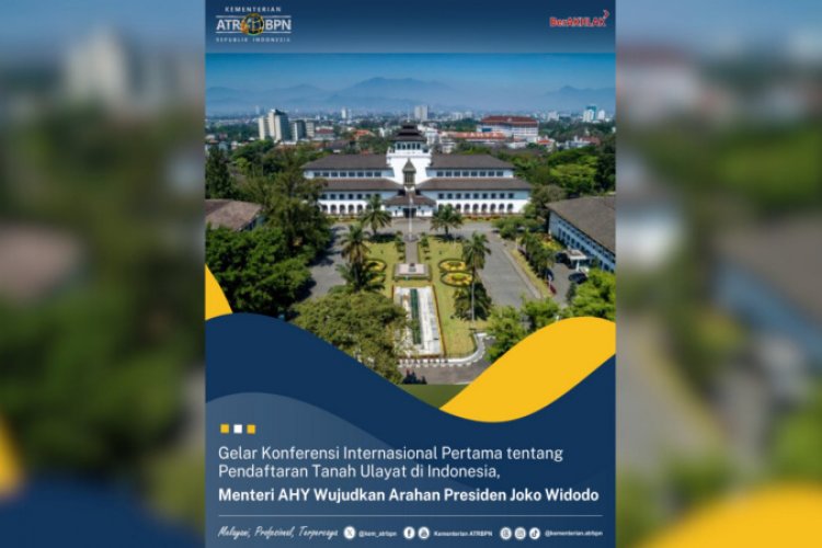 SUARA NGAWI, BANDUNG - Menteri Agraria dan Tata Ruang/Kepala Badan Pertanahan Nasional (ATR/BPN), Agus Harimurti Yudhoyono (AHY) akan membuka Konferensi Internasional pertama tentang Pendaftaran Tanah Ulayat di Indonesia, Kamis (05/09/2024). Acara yang diselenggarakan pada 4-7 September di Kota Bandung ini mengangkat tema “Best Practices of Ulayat Land Registration in Indonesia and ASEAN Countries: Socialization of Ulayat Land in Indonesia".