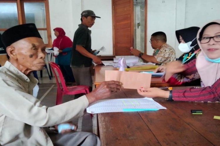 NGAWI - Bantuan Langsung Tunai (BLT) Dana Desa (DD) tahun 2023 Desa Kebon, Kecamatan Paron, Kabupaten Ngawi, Jawa Timur, dibagikan kepada warga, Rabu (29/03/2023).