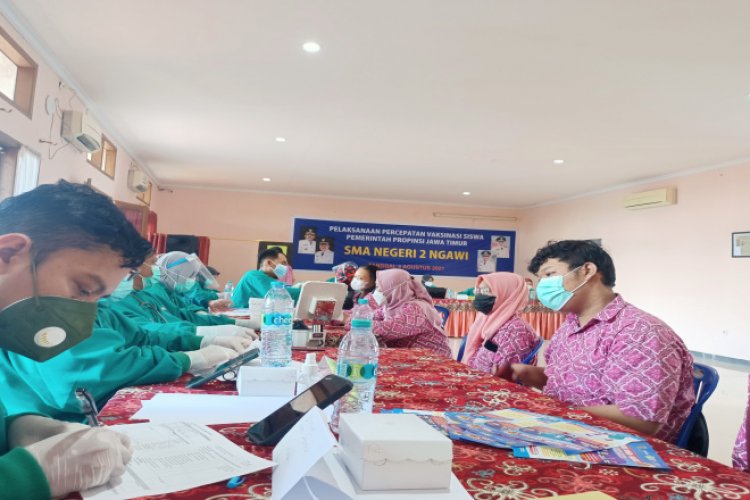 NGAWI - Untuk mendukung kegiatan sekolah tatap muka agar bisa segera kembali digelar. Pemerintah pusat telah melakukan percepatan vaksinasi COVID-19 kepada anak sekolah.