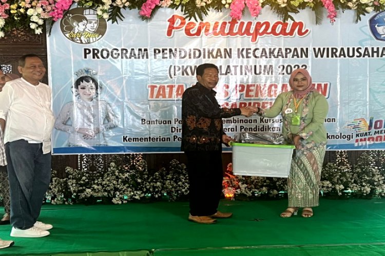 NGAWI - Koordinator Kelompok Kerja Program Ditsuslat Ditjen Pendidikan Vokasi Kemdikbudristek RI, Dr. Kastum memberikan apresiasi terhadap LKP Sari Dewi. Menurutnya, cara LKP Sari Dewi dampingi alumni hingga jadi wirausaha baru merupakan keberhasilan LKP tersebut dalam menjalankan program pemerintah pusat.