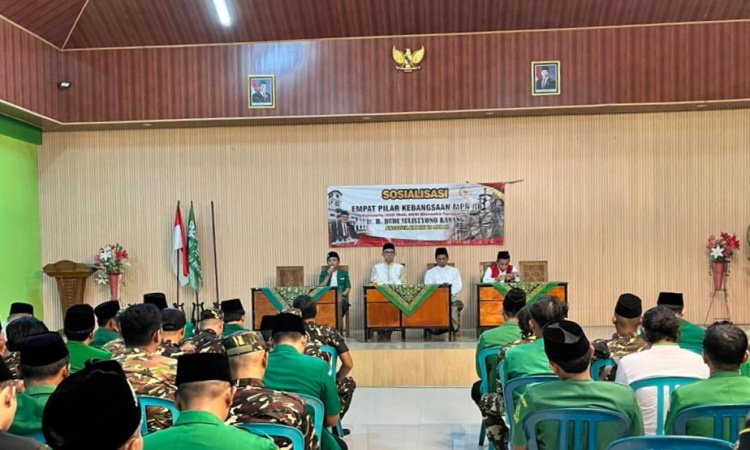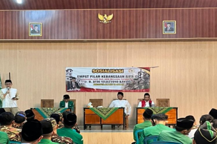 SUARA NGAWI - Budi Sulistyono Kanang, Anggota DPR RI melaksanakan sosialisasi Empat Pilar Kebangsaan MPR RI di Kantor Ansor Banser, Kabupaten Ngawi. Politisi PDI Perjuangan itu mengajak seluruh kader Ansor Banser Ngawi menjadi penjaga Empat Pilar Kebangsaan.