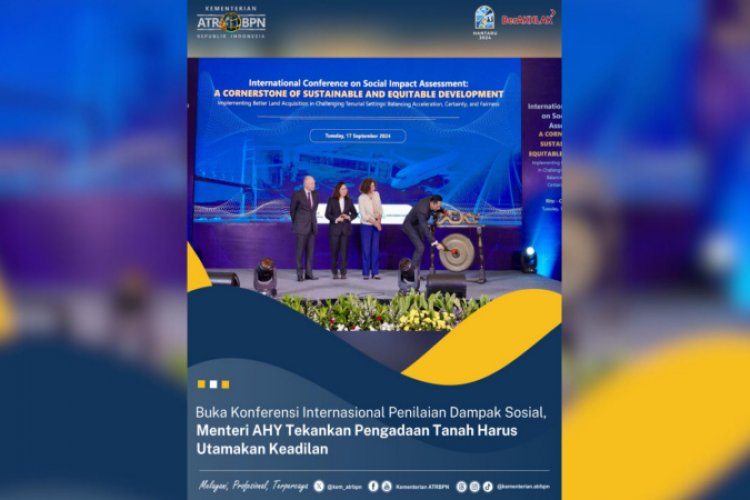 SUARA NGAWI, JAKARTA - Menteri Agraria dan Tata Ruang/Kepala Badan Pertanahan Nasional (ATR/BPN), Agus Harimurti Yudhoyono (AHY) membuka International Conference on Social Impact Assessment, di Hotel Ritz-Carlton Jakarta, Selasa (17/09/2024). Sejalan dengan tema “Implementing Better Land Acquisition in Challenging Tenurial Settings: Balancing Acceleration, Certainty, and Fairness”, Menteri AHY menegaskan bahwa Kementerian ATR/BPN akan terus melakukan pendekatan yang tepat, humanis, dan progresif dalam Pengadaan Tanah bagi masyarakat.