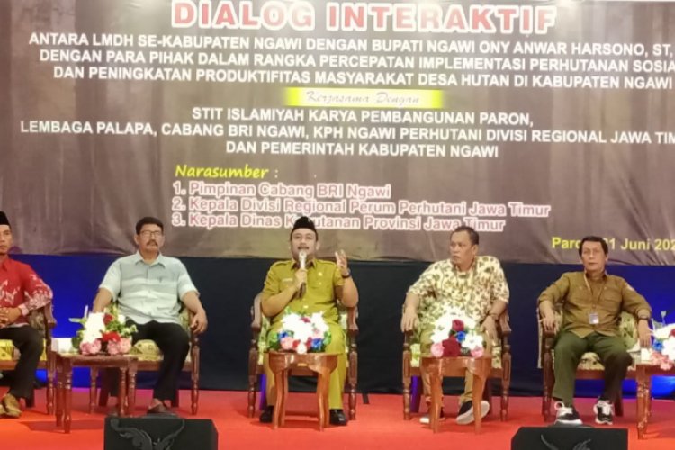 NGAWI - Perhutani Kesatuan Pemangkuan Hutan (KPH) Ngawi melakukan dialog interaktif dalam rangka percepatan implementasi perhutanan sosial dan peningkatan produktivitas, Kamis (29/6/2022).
