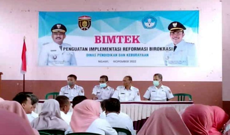 NGAWI - Dinas Pendidikan dan Kebudayaan (Dikbud) Kabupaten Ngawi menggelar bimbingan teknis penguatan implementasi reformasi birokrasi.