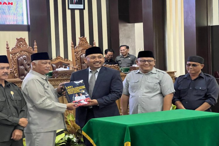 SUARA NGAWI - DPRD Ngawi menggelar rapat paripurna agenda pembahasan Laporan Keterangan Pertanggungjawaban (LKPJ) Bupati Ngawi tahun 2025. Dalam kesempatan itu, Bupati Ngawi Ony Anwar Harsono sampaikan 25 prestasi yang diraih di tahun 2025 dan kenaikan Pendapatan Asli Daerah (PAD).