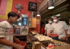 NGAWI - Harsoyo selaku Kepala Dinas Koperasi dan Usaha Mikro terlihat bersama staff lain dan juga anggota koperasi memborong dagangan milik penjual makananan di salah satu warung angkringan dalam kota Kabupaten Ngawi.