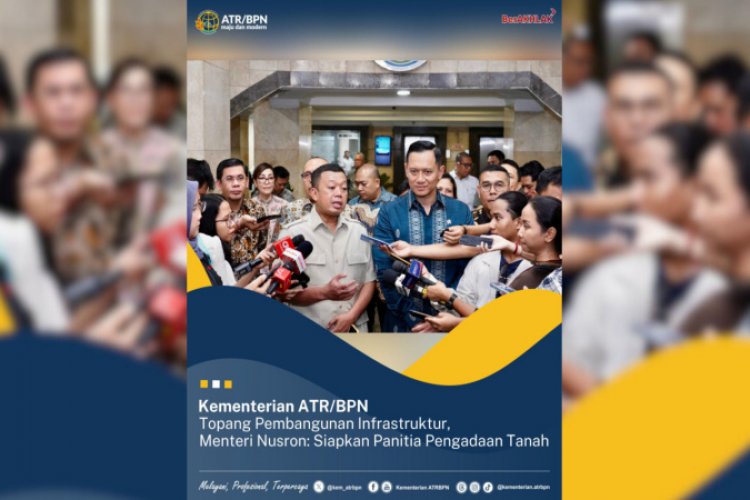 SUARA NGAWI, JAKARTA - Kementerian Agraria dan Tata Ruang/Badan Pertanahan Nasional (ATR/BPN) akan segera mempersiapkan Panitia Pengadaan Tanah untuk menopang pembangunan infrastruktur Indonesia. Hal tersebut disampaikan Menteri ATR/Kepala BPN, Nusron Wahid usai Rapat Koordinasi dengan Menteri Koordinator Bidang Infrastruktur dan Pembangunan Kewilayahan, Agus Harimurti Yudhoyono (AHY) pada Selasa (05/11/2024) di Kementerian ATR/BPN, Jakarta.
