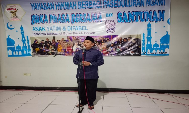 SUARA NGAWI - Yayasan Hikmah Berbagi Paseduluran Ngawi (HBPN) menggelar kegiatan sosial santunan anak yatim dan difabel, bertempat di RM Taman Sari, pada Minggu (15/3/2026).
