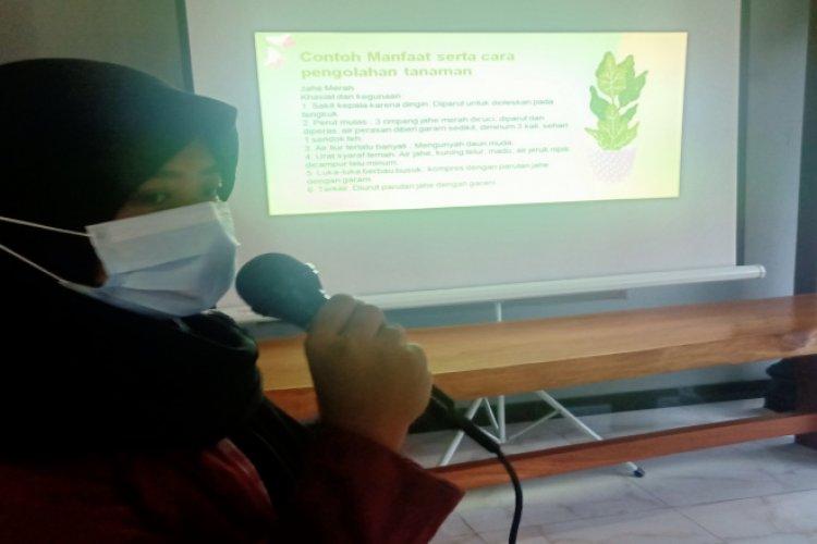 Mahasiswi Fakultas Ilmu Sosial dan Politik (Fisip) disela-sela saat melakukan sosialisasi menjelaskan, ada 9 jenis tanaman yang sudah melalui uji klinik oleh BPOM yang bisa digunakan sebagai obat.