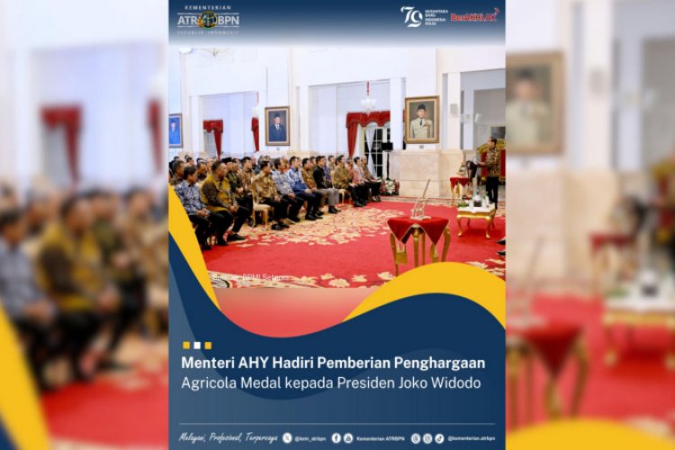 SUARA NGAWI, JAKARTA - Menteri Agraria dan Tata Ruang/Kepala Badan Pertanahan Nasional (ATR/BPN), Agus Harimurti Yudhoyono (AHY) menghadiri kegiatan pemberian Penghargaan Agricola Medal kepada Presiden Republik Indonesia, Joko Widodo. Penghargaan diberikan oleh Food and Agriculture Organization (FAO) di Istana Negara, Jakarta pada Jumat (30/08/2024).
