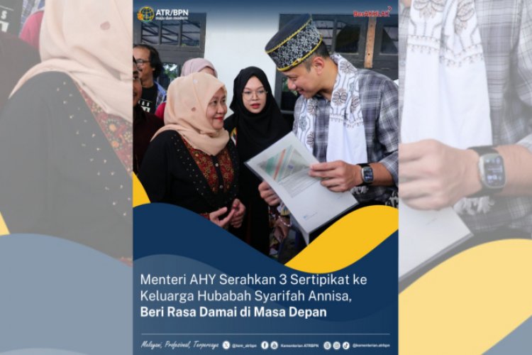 Selain menjalin tali silaturahmi, Menteri ATR/Kepala BPN juga menyerahkan tiga sertipikat kepada anggota keluarga Hubabah Annisa. "Saya sungguh berbahagia bisa hadir secara langsung di sini sekaligus tadi menyerahkan sejumlah sertipikat," ujarnya.