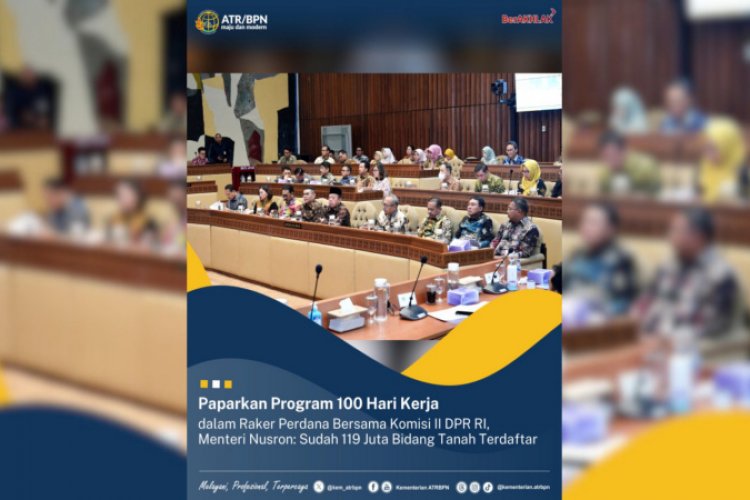 SUARA NGAWI, JAKARTA - Menteri Agraria dan Tata Ruang/Kepala Badan Pertanahan Nasional (ATR/BPN), Nusron Wahid bersama Wakil Menteri (Wamen) ATR/Wakil Kepala (Waka) BPN, Ossy Dermawan mengikuti Rapat Kerja (Raker) Bersama Komisi II Dewan Perwakilan Rakyat Republik Indonesia (DPR RI) untuk pertama kalinya. Rapat yang membahas Target dan Capaian Tahun Anggaran 2024 serta Program 100 Hari Kerja Kabinet Merah Putih ini digelar di Gedung Nusantara DPR RI, Jakarta pada Rabu (30/10/2024).