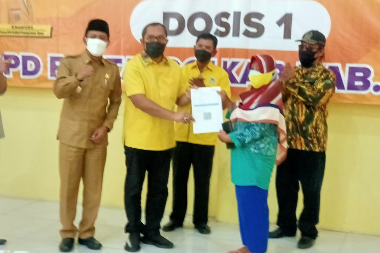 NGAWI - Dewan Pengurus Daerah (DPD) Partai Golongan Karya (GOLKAR) Kabupaten Ngawi menggelar vaksinasi bagi seribu warga Ngawi, Senin (13/9/2021).