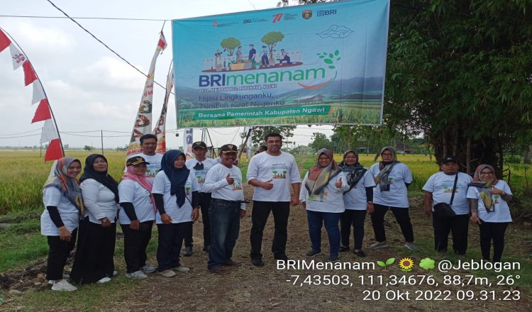 NGAWI - Komitmen Desa Jeblogan, Kecamatan Paron, Kabupaten Ngawi dalam melestarikan alam telah melakukan penanaman pohon bersama Bank Rakyat Indonesia (BRI) Cabang Ngawi, Unit Paron.