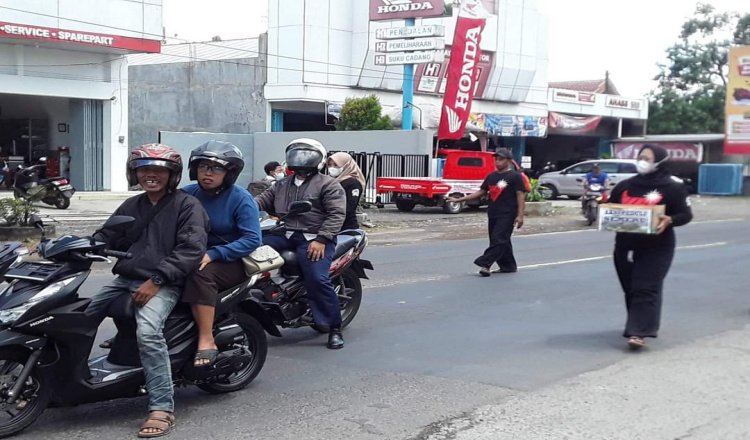 NGAWI - Wujudkan solidaritas kemanusiaan serta bentuk rasa peduli terhadap korban erupsi Gunung Semeru, Persaudaraan Setia Hati Terate (PSHT) Ngawi Barat, gelar aksi turun langsung ke jalan untuk menggalang donasi, Sabtu (11/12/201).
