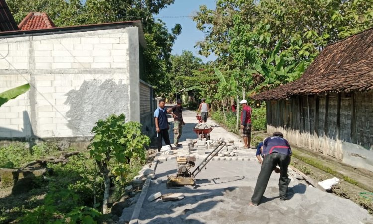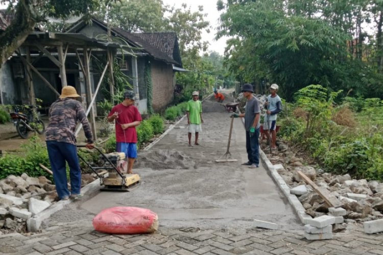 NGAWI - Pemerintah Desa Katikan, Kecamatan Kedunggalar, melaksanakan pembangunan infrastruktur jalan lingkungan melalui pavingisasi di Dusun Bulakrejo RT 08 masuk RW 06.