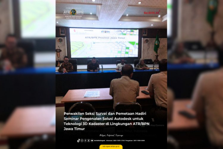Surabaya, 12 November 2024 — Perwakilan dari Seksi Survei dan Pemetaan turut berpartisipasi dalam Seminar Pengenalan Solusi Autodesk atas penerapan teknologi 3D Kadaster yang diselenggarakan di Ruang Reforma Agraria, Kantor Wilayah Badan Pertanahan Nasional (BPN) Provinsi Jawa Timur, Jalan Gayung Kebonsari No. 60, Surabaya. Seminar ini dihadiri oleh berbagai pihak terkait yang bergerak dalam bidang pemetaan dan pertanahan, dengan tujuan meningkatkan pemahaman tentang penerapan teknologi terbaru dalam mendukung pekerjaan di lingkungan ATR/BPN.