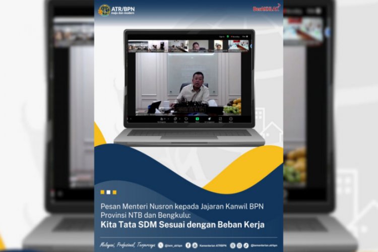 SUARA NGAWI, JAKARTA - Menteri Agraria dan Tata Ruang/Kepala Badan Pertanahan Nasional (ATR/BPN), Nusron Wahid memberikan pengarahan kepada jajaran Kantor Wilayah (Kanwil) BPN Provinsi Nusa Tenggara Barat (NTB) dan Bengkulu secara daring pada Rabu (11/12/2024). Pesan yang ia tekankan kali ini terkait penataan sumber daya manusia (SDM) di daerah sesuai dengan beban kerja dan tingginya permintaan pelayanan dari masyarakat.