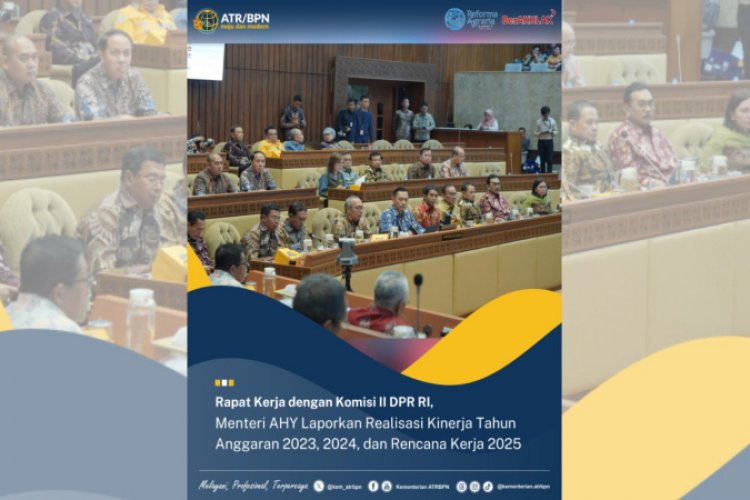 SUARA NGAWI, JAKARTA - Menteri Agraria dan Tata Ruang/Kepala Badan Pertanahan Nasional (ATR/BPN), Agus Harimurti Yudhoyono (AHY) menyampaikan realisasi kinerja Kementerian ATR/BPN pada Tahun Anggaran 2023, 2024, dan Rencana Kerja 2025.