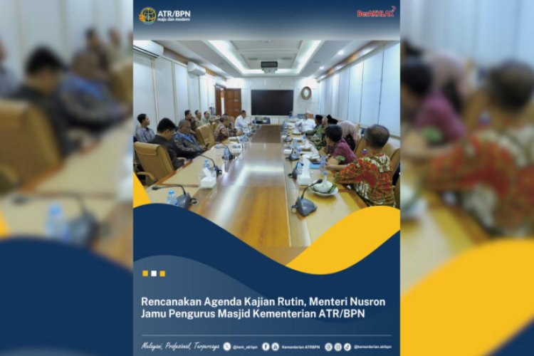 SUARA NGAWI, JAKARTA - Menteri Agraria dan Tata Ruang/Kepala Badan Pertanahan Nasional (ATR/BPN), Nusron Wahid menjamu pengurus Masjid Nurur Rahman Kementerian ATR/BPN di Ruang Rapat Menteri, selepas Salat Jumat (08/11/2024).