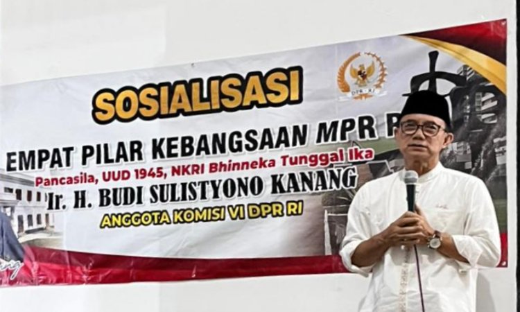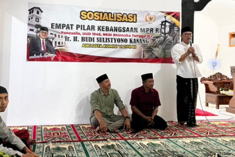 NGAWI - Anggota DPR RI/MPR RI, Budi Sulistyono alias Kanang melaksanakan sosialisasi Empat Pilar Kebangsaan di Kecamatan Kwadungan, Kabupaten Ngawi, Jawa Timur, pada Selasa 10 Februari 2026.
