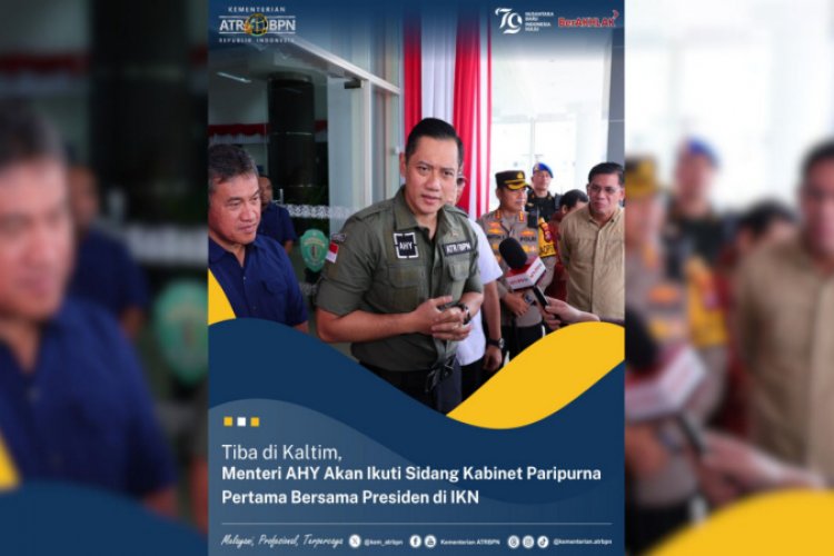 SUARA NGAWI, BALIKPAPAN - Menteri Agraria dan Tata Ruang/Kepala Badan Pertanahan Nasional (ATR/BPN), Agus Harimurti Yudhoyono (AHY) tiba di Kota Balikpapan, Provinsi Kalimantan Timur, Minggu (11/08/2024). Dalam kunjungan kerja ini, ia akan melakukan sejumlah agenda, mulai dari meninjau Pelayanan Tanah Akhir Pekan (PELATARAN) hingga mengikuti Sidang Kabinet Paripurna di Ibu Kota Nusantara (IKN) pada Senin (12/08/2024).