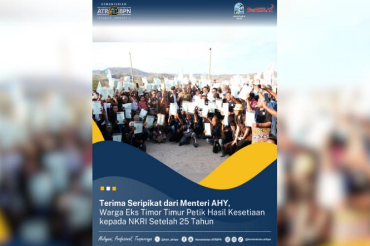 Penyerahan sertipikat ini mewujudkan kepastian hukum hak atas tanah bagi warga eks Timor Timur.